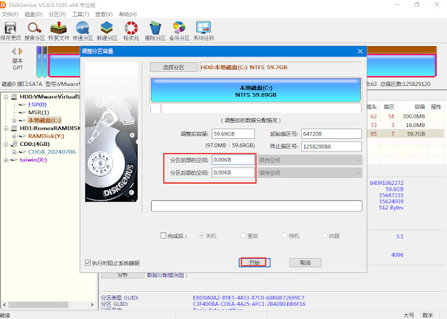未安裝windows 11 24H2之前,在PE預先分割虛擬磁碟後。磁碟分割區,與原本想的,有點差異。在PE 執行diskgenius查看,在C碟案滑鼠右鍵->調整分區大小
